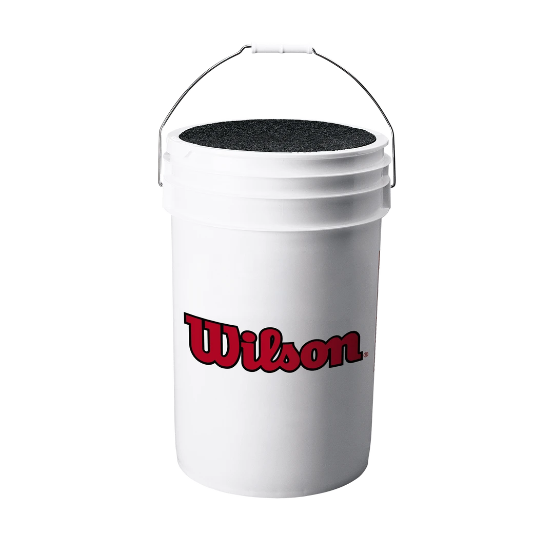 - Wilson logo in red on white bucket.